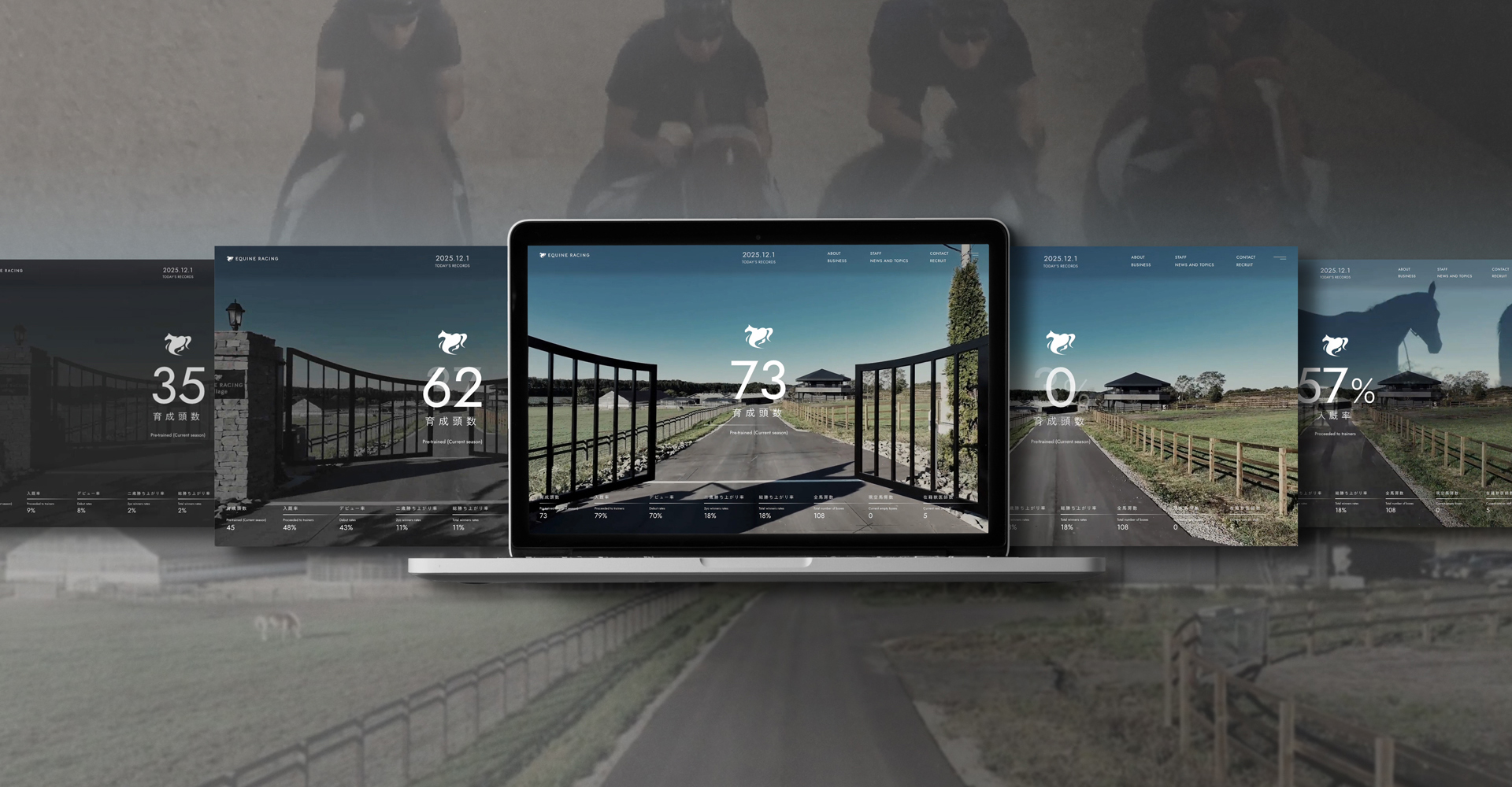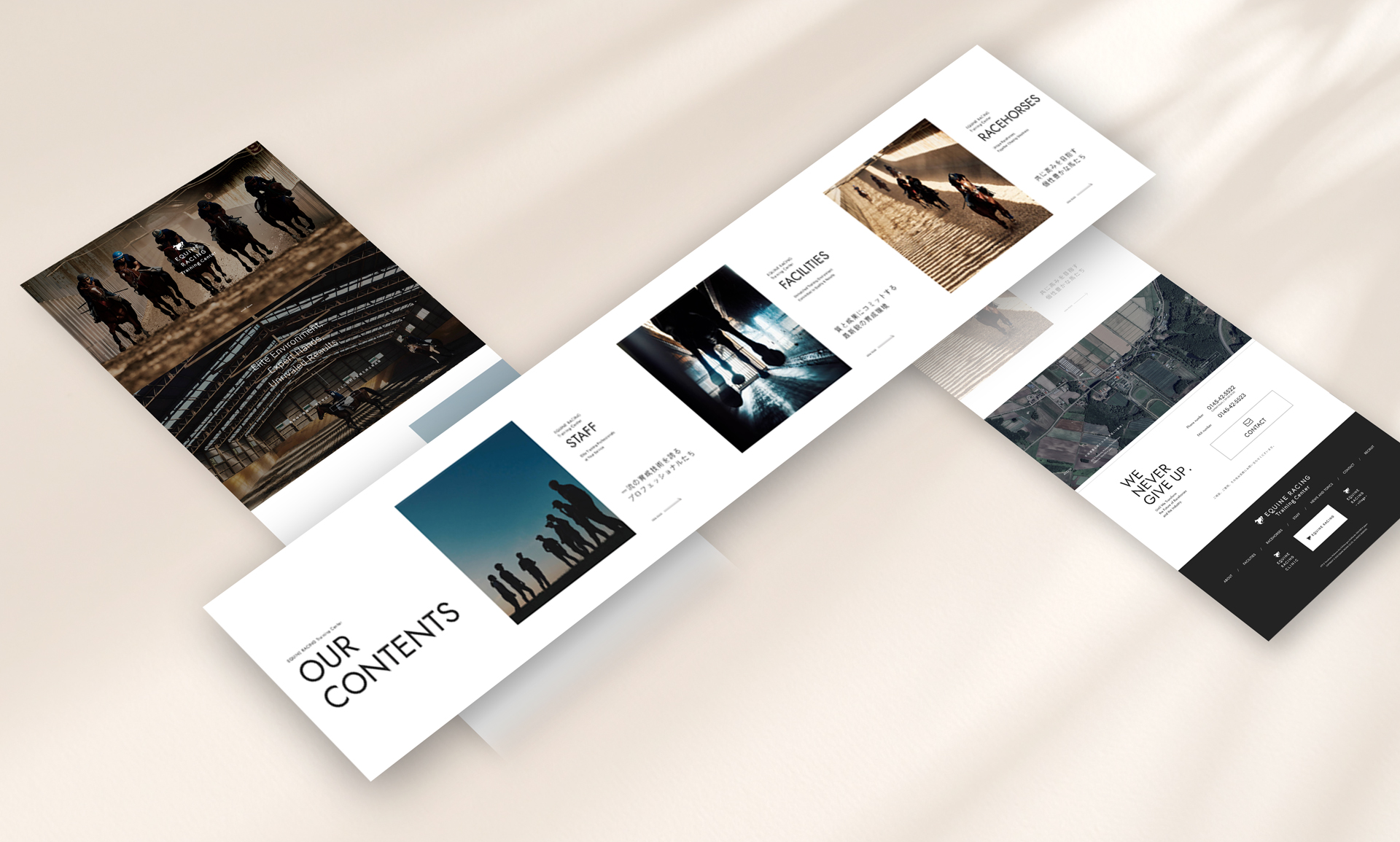 最新のトレーニング技術や設備を有する競走馬育成牧場「エクワインレーシング」のコーポレートサイト及び関係するコンテンツの制作。“世界一カッコいい育成牧場ウェブサイトをつくりたい!”という明確なクライアントの意思を受け、映像を核に据えたウェブサイトを提案。牧場の技術や設備、スタッフの質の高さに見合うハイクオリティの映像コンテンツを、撮影/演出/編集/音楽すべて精鋭のスタッフにて制作。それらを魅力的に表現するメディアとしてウェブサイトを位置付けました。スタッフを含むステークホルダーの士気が上がっただけでなく、優秀な人材の採用にも繋がりました。また、様々な端末から競走馬の管理や分析が可能なシステム"UMAKANRI"も開発しました。