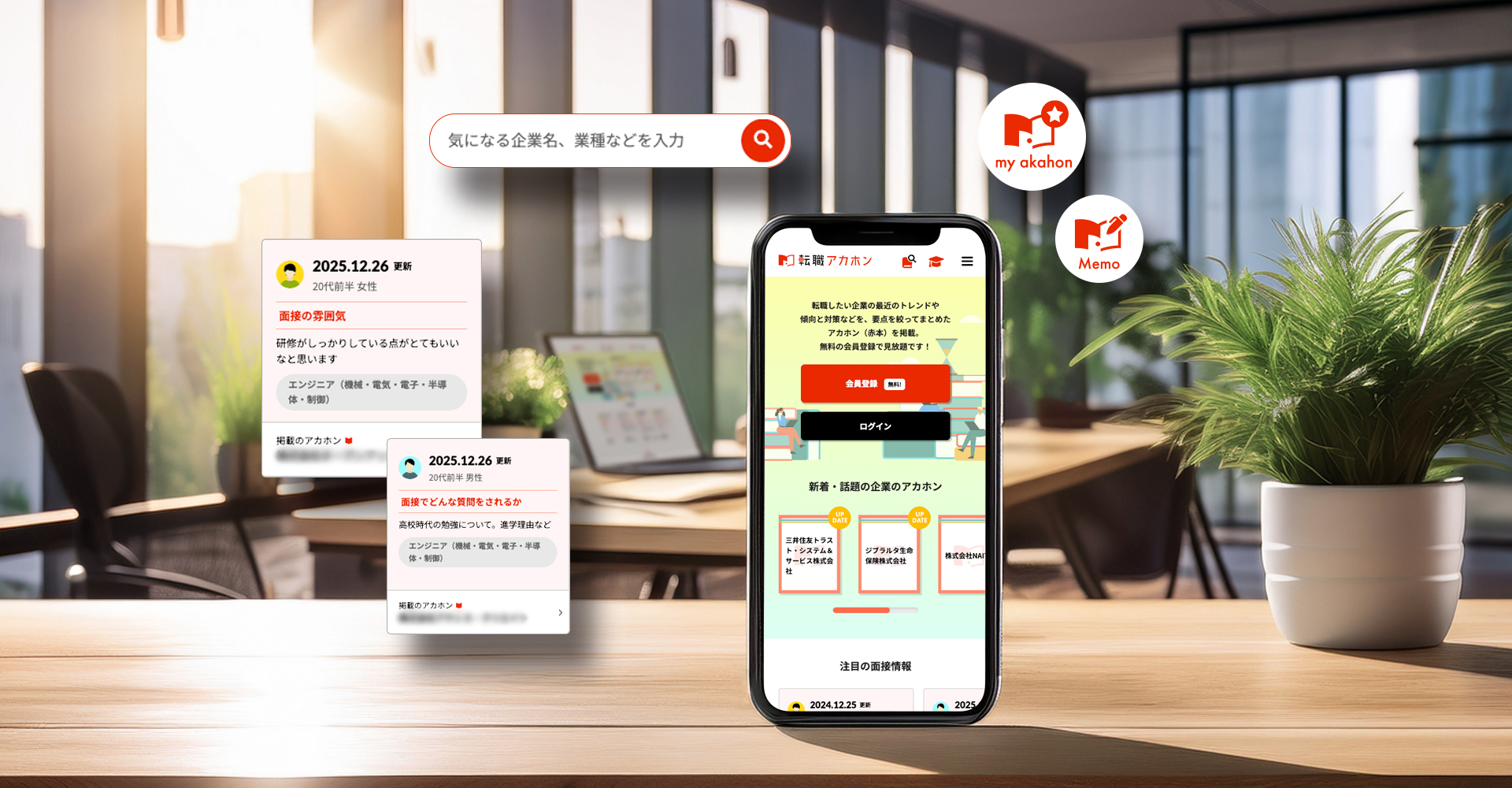 「転職アカホン」という、転職(就職)活動における“面接情報”に特化した転職者向けのウェブプラットフォーム制作プロジェクトです。運営会社は株式会社HARE(転職支援・求人紹介)。 ユーザーが求めているものは何か、それを言語化しデザインし実装することが求められました。企画段階から運用を見越した設計・デザインを提案することで、ユーザーにとって有益で拡張性のあるプラットフォームが生まれました。